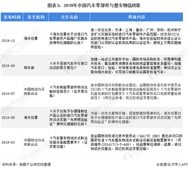 在汽車零部件和整車物流政策方面,國家在進出口方面減少抽檢程序,一定程度有利于汽車零部件進口,促進汽車零部件物流發(fā)展。對于汽車物流規(guī)范,《汽車整車物流多式聯(lián)運設(shè)施設(shè)備配置要求》(征求意見稿),《汽車制造零部件物流運輸標簽規(guī)范》(征求意見稿)相繼出臺,推動汽車物流行業(yè)規(guī)范發(fā)展。